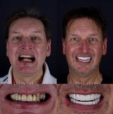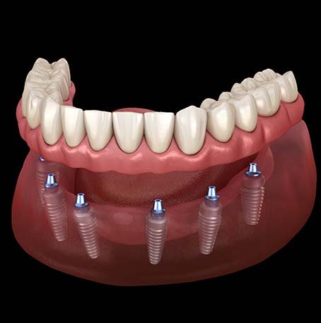 Altı implant lokal anestezi altında çene kemiğine cerrahi olarak yerleştirilir. Diş hekimi korkusu olan hastalar için genel anestezi kullanılabilir. Yetersiz kemik hacmi veya yoğunluğu olan hastalar için kemik grefti ve sinüs kaldırma gerekebilir; ancak bu işlemler genellikle sağlıklı kemik yapısına ve uygun ağız sağlığına sahip olanlar için gerekli değildir. Bazı durumlarda, implant yerleştirilmeden önce diş çekimi gerekebilir.