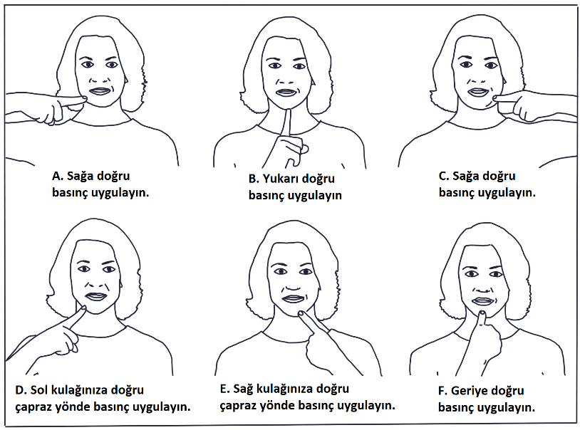 Parmaklar yardımıyla yapılan hafif masaj hareketleri, çene eklemi çevresindeki kasların gevşemesine yardımcı olur. Bu süreçte çene kaslarının aktif olarak hissedilmesi önemlidir.