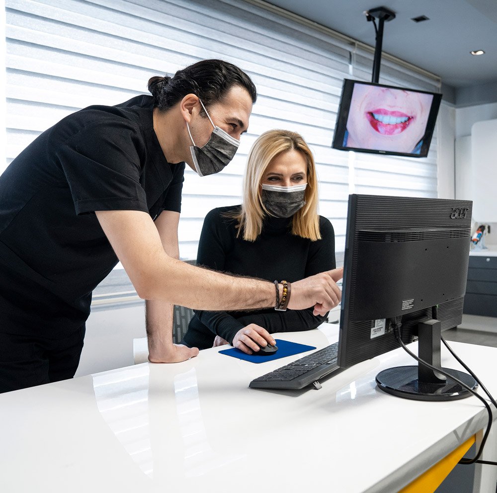 Konsültasyon sırasında diş hekimi dişlerinizi ve diş etlerinizi muayene edecek, röntgen çekecek ve CAD/CAM teknolojisi ile Dijital Gülüş Tasarımı (DSD) yazılımını kullanarak tedavinizi planlayacaktır. Kişiselleştirilmiş bir yaklaşım sağlamak için hedefleriniz ve beklentileriniz de görüşülecektir.